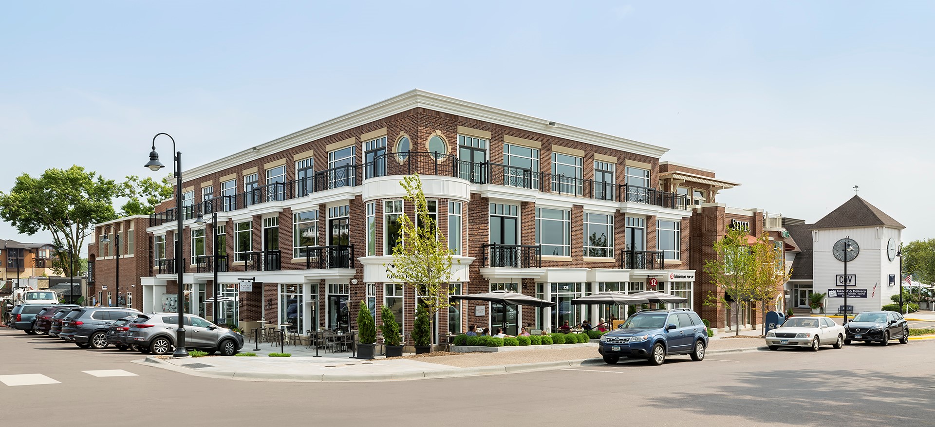 Nordstrom Metal fabricated and installed metal cornice trims, break metal flashing, and louvers for this mixed-use building located in downtown Wayzata.
